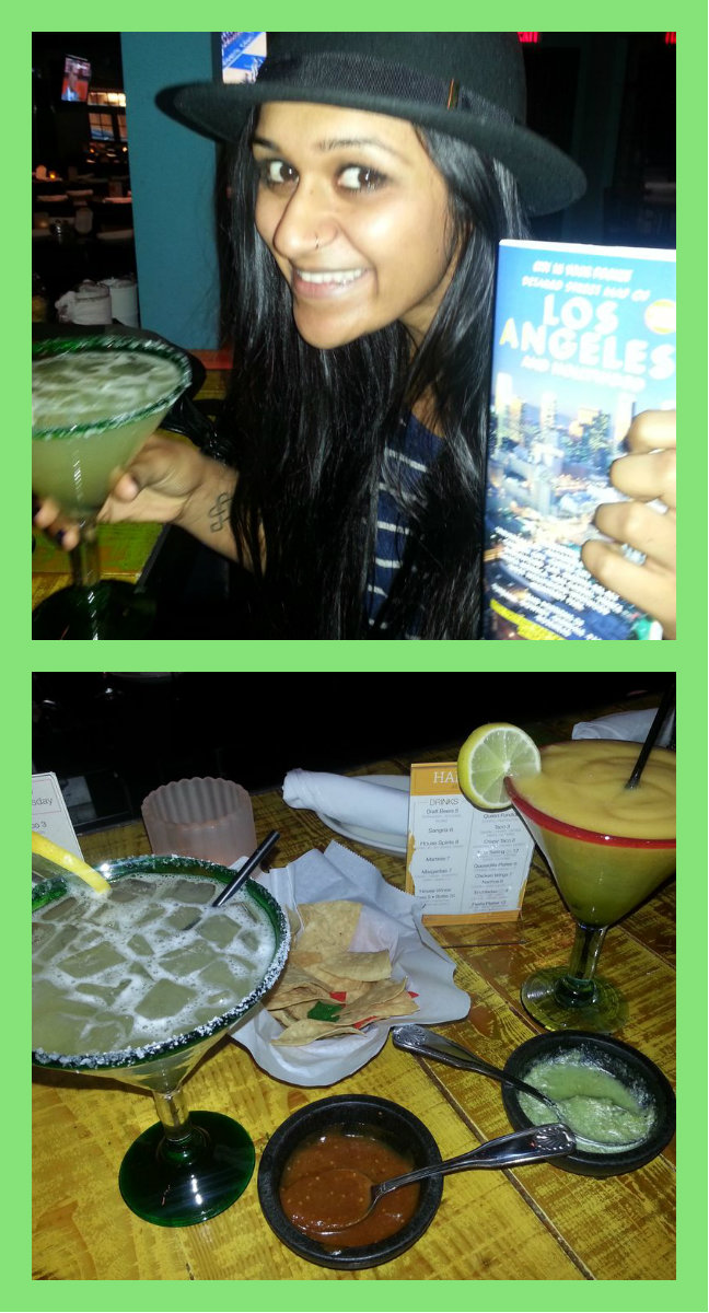Hayley had to drive off to see a client but she dropped us off in Westwood to wander around. At the base of UCLA*, Westwood is a cute little area with lots of shops and restaurants. Nisha and I debated going to see Her but decided to find some Mexican food instead. Margarita Monday! We enjoyed some nachos and margaritas and chatted about how exciting it is to be in L.A. That excitement mostly kept up as we navigated our way home — walk, bus, metro, walk — an hour and a half journey.